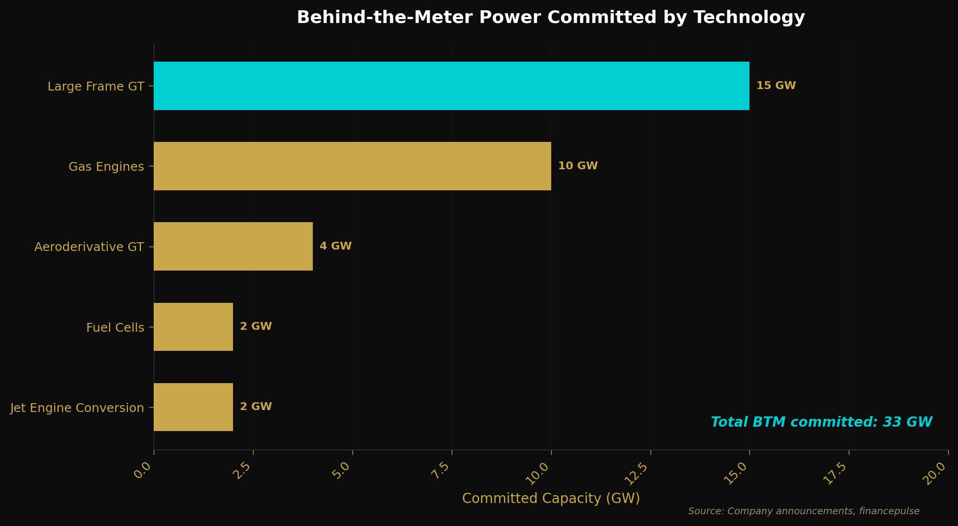 According to estimates 33+ GW of behind-the-meter data center power is now committed across various technologies: