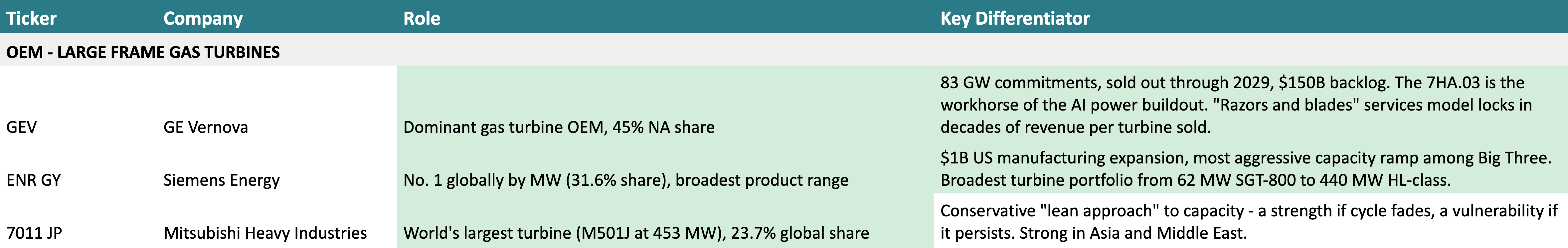 The conservative stance is prudent if this cycle fizzles. It’s a competitive vulnerability if it doesn’t. Customers with urgent timelines - and right now, every customer has an urgent timeline - go to whoever can deliver. MHI’s backlog of 67 large-frame units (~26 GW) stretches to FY2029-2030. The Japan-to-US logistics chain adds complexity that domestic manufacturers don’t face.